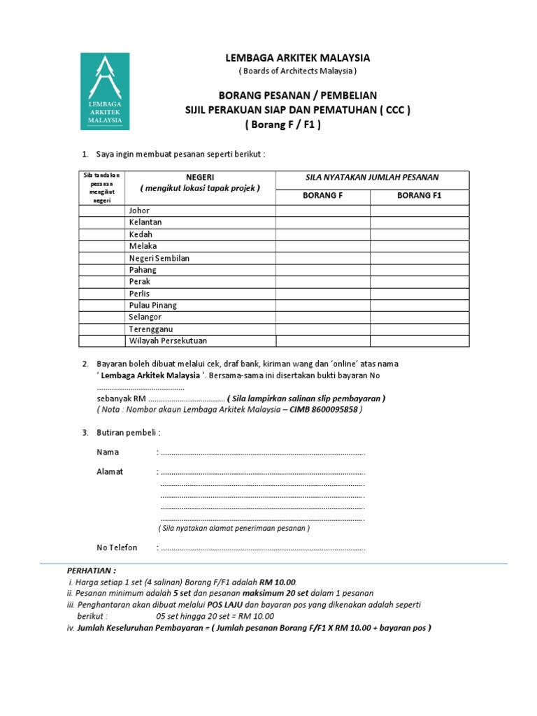 Borang F Purchase Form Ccc Pdf